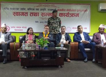 विराटनगरका उद्योगी व्यवसायीले विशेष आर्थिक क्षेत्र (सेज) स्थापनाको माग राखेका छन्। उद्योग बाणिज्य तथा आपूर्ति राज्यमन्त्री मोतिलाल दुगडको स्वागत गर्दै ...