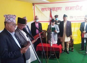 प्रदेश १ का नवनियुक्त दुई मन्त्री र तीन राज्यमन्त्रीले शपथ लिएका छन् । बुधबार साँझ एक समारोहबीच प्रदेश प्रमुख सोमनाथ अधिकारीसँग नवनियुक्त मन ...