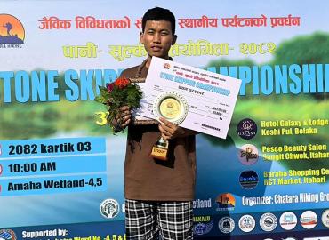 स्टोन स्किपिङ च्याम्पियनसिप (पानी सुल्के प्रतियोगिता) मा राहुल लिम्बूले लगातार तेस्रो पटक जित निकालेका छन् । सुनसरीको वराहक्षेत्रस्थित अमाह सि ...